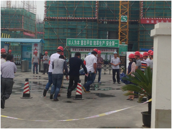 夢家園施工單位項(xiàng)目部全體人員、施工班組部分人員參加演習(xí),開發(fā)公司領(lǐng)導(dǎo)、房建工程部、市政工程部、投資發(fā)展部等全體人員到場觀摩。