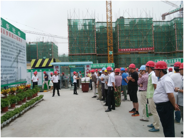 7月21日上午,在蘇宿園區(qū)安監(jiān)站組織下,園區(qū)內(nèi)在建工地施工單位、監(jiān)理單位及建設(shè)單位項目負責人對夢家園施工現(xiàn)場進行觀摩。