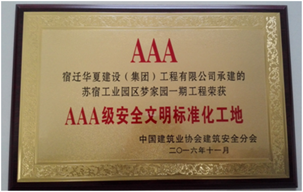 近日,由園區(qū)開發(fā)公司代建的夢(mèng)家園一期工程獲評(píng)二零一六年度“AAA級(jí)安全文明標(biāo)準(zhǔn)化工地”稱號(hào)。夢(mèng)家園一期工程是本年度宿遷市唯一一家獲此殊榮的在建項(xiàng)目。
