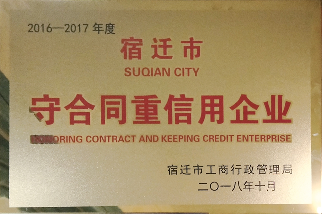 11月8日,宿遷市工商行政管理局召開2016—2017年度“守合同重信用”企業(yè)公示證書頒發(fā)暨宿遷市企業(yè)信用管理協(xié)會(huì)第四次會(huì)員代表大會(huì),園區(qū)城發(fā)公司獲評(píng)宿遷市“守合同重信用” 企業(yè)榮譽(yù)稱號(hào)。