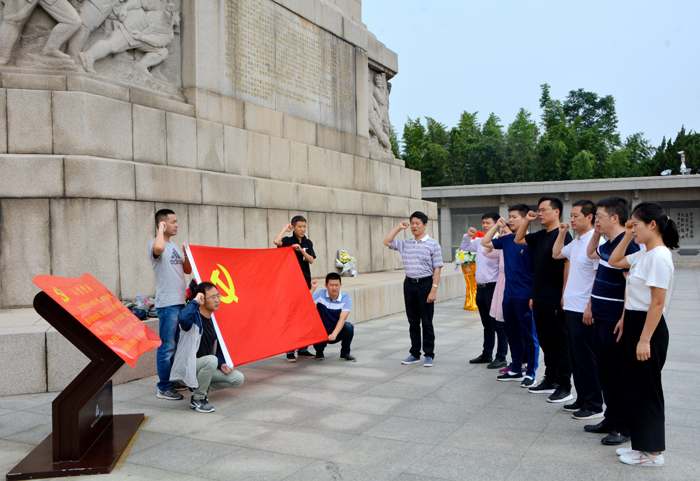 在淮海戰(zhàn)役烈士紀(jì)念塔前,大家駐足瞻仰,對烈士們肅然起敬。在公司黨支部書記劉建華的帶領(lǐng)下,全體黨員面對鮮紅的黨旗,舉起右手,重溫入黨誓詞,“我志愿加入中國共產(chǎn)黨,擁護黨的綱領(lǐng),遵守黨的章程,履行黨員義務(wù),執(zhí)行黨的決定……”,鏗鏘有力的宣誓,向為在淮海戰(zhàn)役中犧牲的先烈們表示深深的敬意,表達(dá)了全體黨員愿為社會主義事業(yè)奮斗終身的堅定信心。隨后,大家懷著崇敬的心情瞻仰了在戰(zhàn)役中英勇犧牲的烈士英名錄。在紀(jì)念館展廳,大家都認(rèn)真參觀,仔細(xì)聆聽講解員對歷史的講解,每到一個展柜都會駐足觀看圖片資料,了解淮海戰(zhàn)役的整個過程,深深感受到了革命先烈們的非凡膽識和英勇壯舉,并對人民群眾踴躍支持前線行為表示由衷贊嘆。