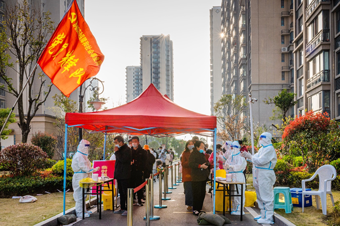 一支黨員先鋒隊,全力打贏疫情防控阻擊戰(zhàn) 疫情就是命令。為有序開展園區(qū)大規(guī)模區(qū)域核酸檢測工作,園區(qū)機關(guān)、企事業(yè)單位黨員干部積極響應(yīng)黨工委號召,火速集結(jié),爭分奪秒開赴核酸檢測預(yù)定點位。從凌晨的物資準備、早上5點的核酸檢測,到夜間的“掃樓行動”,忙碌地穿梭于樓棟之間的黨員突擊隊員,堅決落實好“不落一戶,不漏一人”的防控要求。共產(chǎn)黨員、園區(qū)安委辦綜合協(xié)調(diào)與巡查督查處副處長朱婷婷說:“在這個疫情防控的緊要時期,作為一名共產(chǎn)黨員,拉得出、打得響,是我對自己最基本的要求。”在履行防控職責同時,黨員志愿者和醫(yī)護人員跨前一步,為社區(qū)獨居老人、行動不便老人提供送檢上門等貼心服務(wù),受到群眾廣泛點贊。