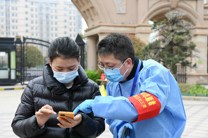 一群黨員“點位長”,扛起疫情防控沉甸甸的責任 “請打開 ‘宿康寶’核酸檢測預(yù)約記錄,主動出示給工作人員。”“請戴好口罩,保持一米線。”兩日來,在園區(qū)翡翠藍灣小區(qū)核酸檢測點,排隊等候的小區(qū)居民總能看到臂戴黨員志愿者袖標的城發(fā)公司行政人事部兼合約造價部總經(jīng)理李桂志在人群中忙碌的身影。每次核酸檢測前,他統(tǒng)籌安排,早早做好現(xiàn)場布置;檢測過程中,他不停進行安全提醒,及時指導(dǎo)待檢人員提前做好微信小程序“宿康寶”的注冊和預(yù)約登記,幫助現(xiàn)場群眾快速便捷完成核酸檢測。