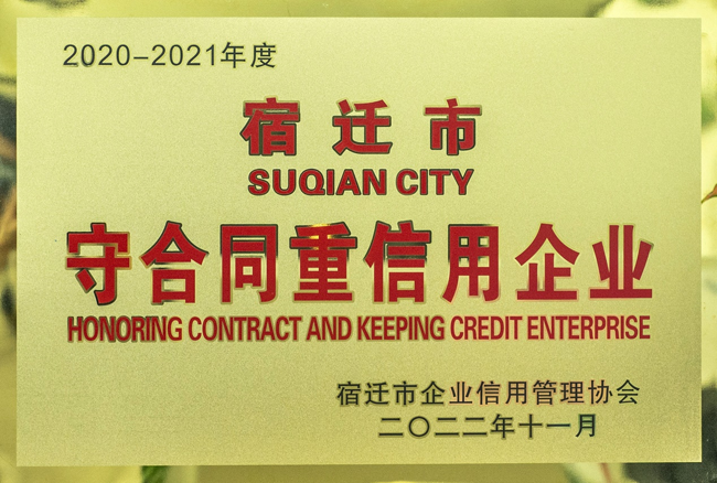 誠(chéng)信是企業(yè)重要的無(wú)形資產(chǎn),是企業(yè)賴以生存的制勝法寶,是企業(yè)的核心競(jìng)爭(zhēng)力。近日,園區(qū)城發(fā)公司獲評(píng)宿遷市2020 — 2021年度“守合同重信用”企業(yè)榮譽(yù)稱號(hào)。