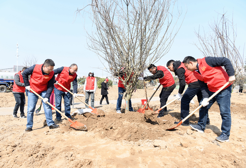 種一棵小樹,綠一方凈土,多一片綠葉,多一份溫馨。3月12日城發(fā)公司黨支部組織志愿者來(lái)到園區(qū)蘇悅公園開展主題黨日暨義務(wù)植樹活動(dòng),大家分工合作,有的挖坑、有的扶苗、有的填土、有的澆水......場(chǎng)面繁忙有序,很快一棵棵希望的樹苗在園區(qū)的大地上“安家落戶”。