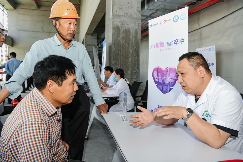 本次活動,由“城芯同筑”黨群服務站精心策劃,周密安排。宿遷市第一人民醫(yī)院內(nèi)科黨總支書記、大內(nèi)科副主任、風濕免疫科主任臧銀耐心解答現(xiàn)場工友的健康疑問,根據(jù)工友的身體情況給予專業(yè)的醫(yī)療建議及指導,得到了現(xiàn)場工友的一致好評?;顒蝇F(xiàn)場以建筑工地常見的意外傷害應急處理為主題開展健康知識講座,生動形象的講解處理意外傷害相關知識及應急救援措施,同時現(xiàn)場開展全國“愛眼日”及中國“房顫日”等宣傳教育活動。