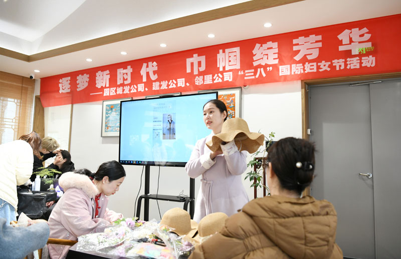 在手工制作環(huán)節(jié),女職工們化身“匠心設(shè)計(jì)師”,運(yùn)用絲帶、花草等材料精心制作專屬禮帽?,F(xiàn)場學(xué)會運(yùn)用各自的創(chuàng)意巧思,呈現(xiàn)出風(fēng)格各異的作品。