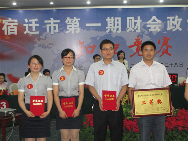 6月28日,宿遷市第一期財(cái)會(huì)政策法規(guī)知識(shí)競賽在國際飯店舉行,經(jīng)過激烈的角逐,園區(qū)財(cái)政局代表隊(duì)獲二等獎(jiǎng)。