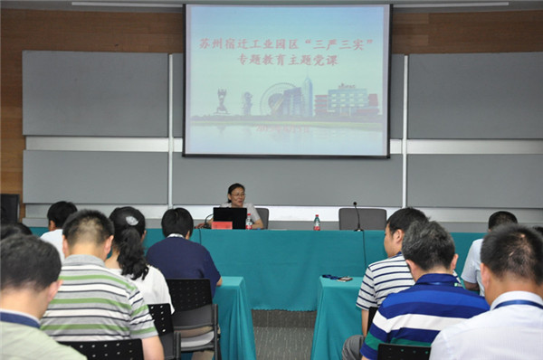 8月5日下午,園區(qū)工委副書記、管委會(huì)副主任駱敏為園區(qū)機(jī)關(guān)事業(yè)單位、國資國企黨員講了一堂“三嚴(yán)三實(shí)”專題黨課。
