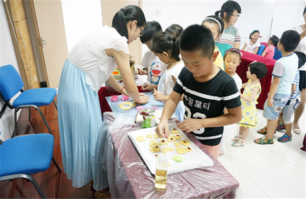 園區(qū)居民徐老師也加入社工的隊伍,她說:一個孩子要帶,一群孩子一樣帶,社區(qū)提供這樣的平臺,正好讓她這個化學老師學有所用、用有所長。徐老師與社工為孩子們精心設計了手工制作、創(chuàng)意畫板、親子DIY、餅干烘焙、安全自護、戶外探險等課程,不斷灌輸“小候鳥”們各種知識與道理,使孩子在收獲快樂的同時健康成長,也給“小候鳥”留下一段難忘的暑期生活記憶。
