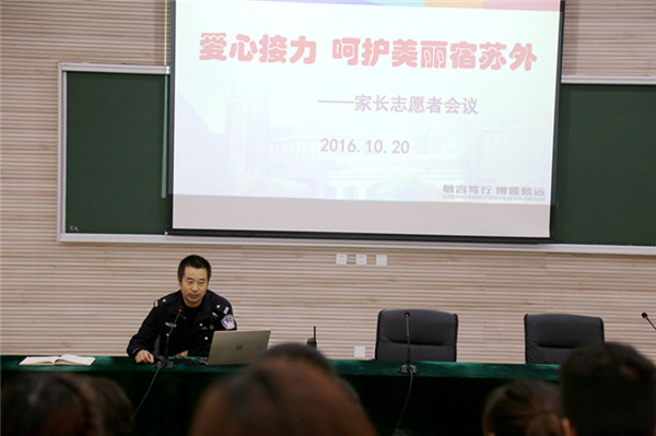 校園安全是學(xué)校發(fā)展的首要工作,更是創(chuàng)建文明校園的重要保障。近日,宿遷市蘇州外國(guó)語(yǔ)學(xué)校召開(kāi)了家長(zhǎng)志愿者會(huì)議,宿遷市交警支隊(duì)干警和五十名愛(ài)心家長(zhǎng)以及學(xué)校相關(guān)行政人員參加了本次活動(dòng),大家齊聚一堂,共同討論并確定了本學(xué)期的家長(zhǎng)志愿者工作安排。