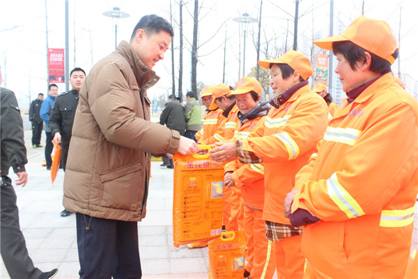 1月18日上午,園區(qū)黨工委委員、管委會副主任、規(guī)劃建設(shè)局局長許紹杰帶隊慰問了奮戰(zhàn)在一線的城市維護作業(yè)人員,向他們送上了春節(jié)的問候。